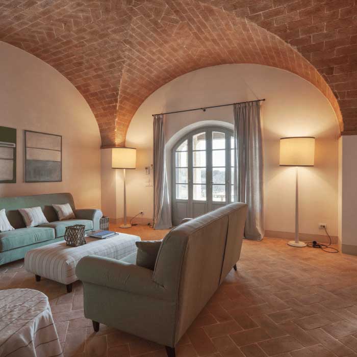 Situato al piano terra di un antico casale completamente ristrutturato Valle 1 offre la possibilità di vivere il tipico stile di vita toscano e rilassarsi sotto il loggiato immerso nel verde della campagna.
